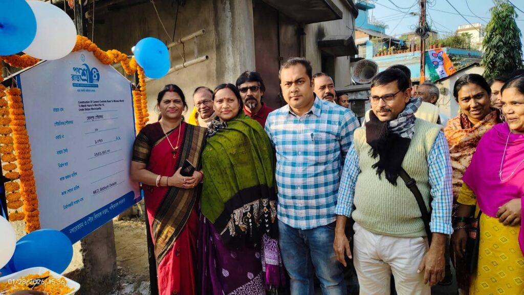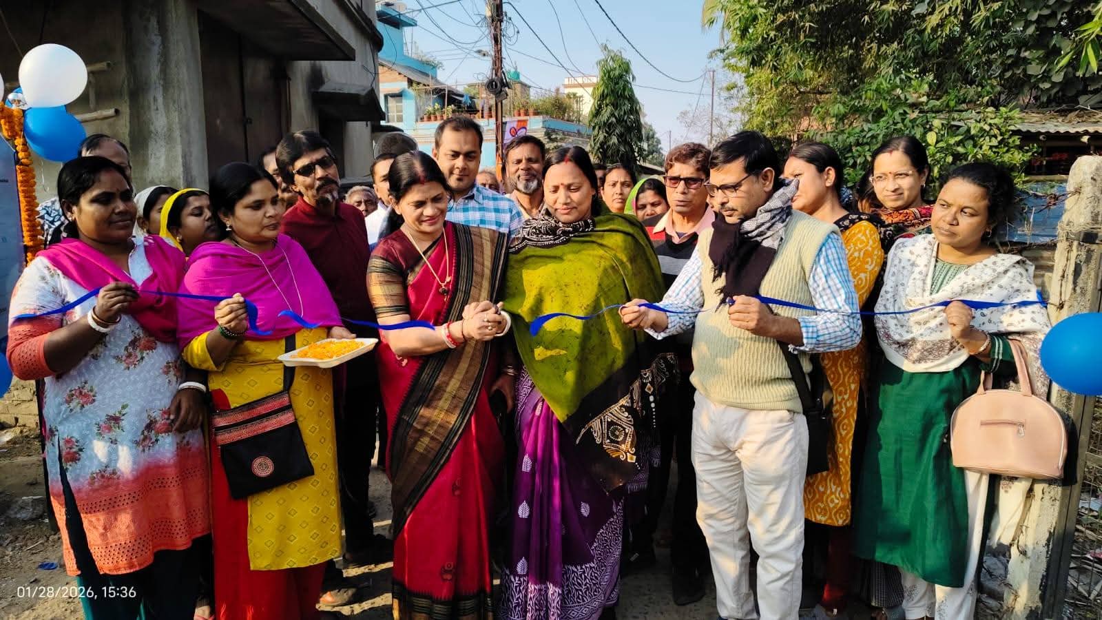 মাননীয়া মুখ্যমন্ত্রী মমতা বন্দ্যোপাধ্যায়ের সমাজমুখী প্রকল্প পথশ্রী 4 এর অন্তর্গত বোলপুর পৌরসভার ১৬ নম্বর ওয়ার্ডের রাস্তা সংস্কারের ভিত্তি প্রস্থর স্থাপন করা হল ৷ উপস্থিত ছিলেন মাননীয়া পৌরমাতা এবং ওয়ার্ড কাউন্সিলর ৷