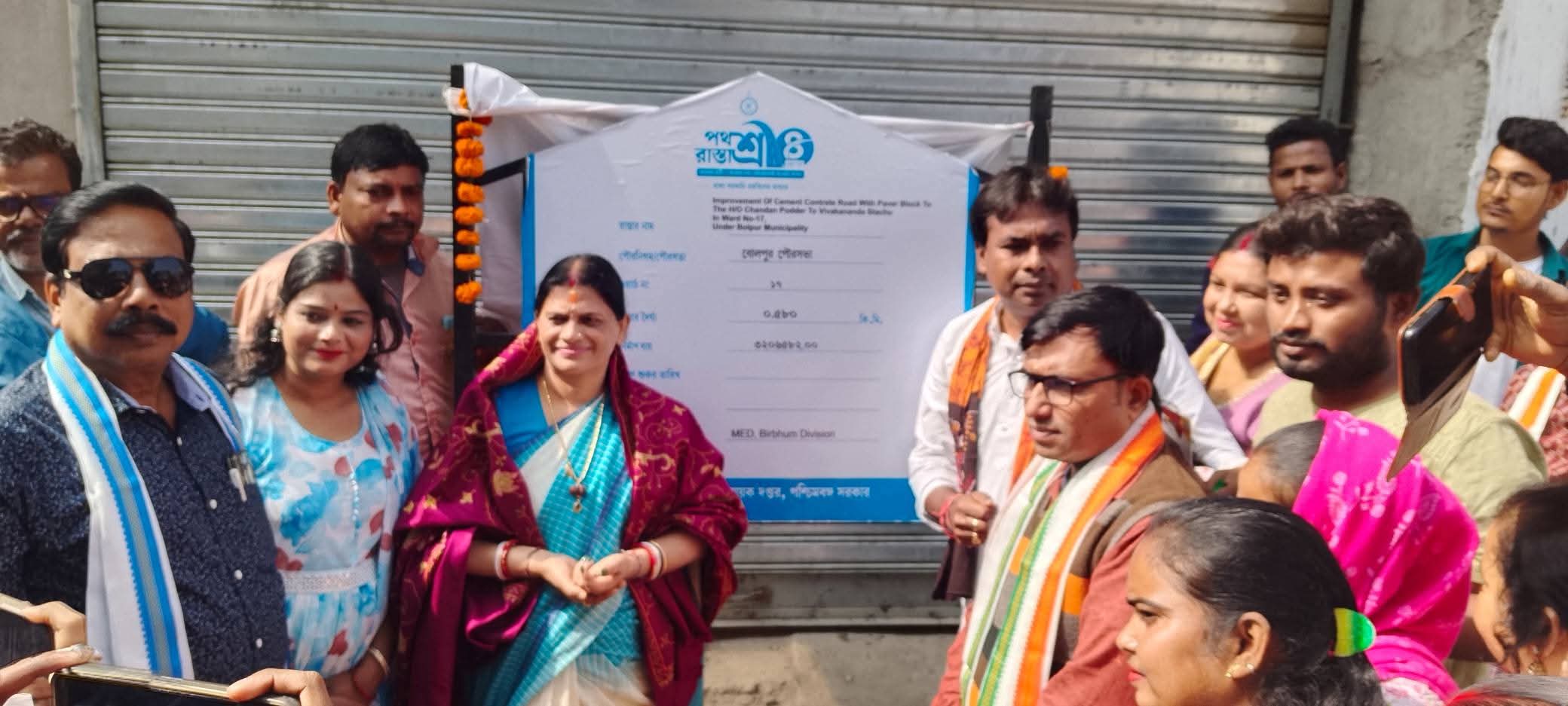 মাননীয়া মুখ্যমন্ত্রী মমতা বন্দ্যোপাধ্যায়ের সমাজমুখী প্রকল্প পথশ্রী 4 এর অন্তর্গত বোলপুর পৌরসভার ১৭ নম্বর ওয়ার্ডের রাস্তা সংস্কারের ভিত্তি প্রস্থর স্থাপন করা হল৷ উপস্থিত ছিলেন মাননীয়া পৌরমাতা এবং ওয়ার্ড কাউন্সিলর ৷