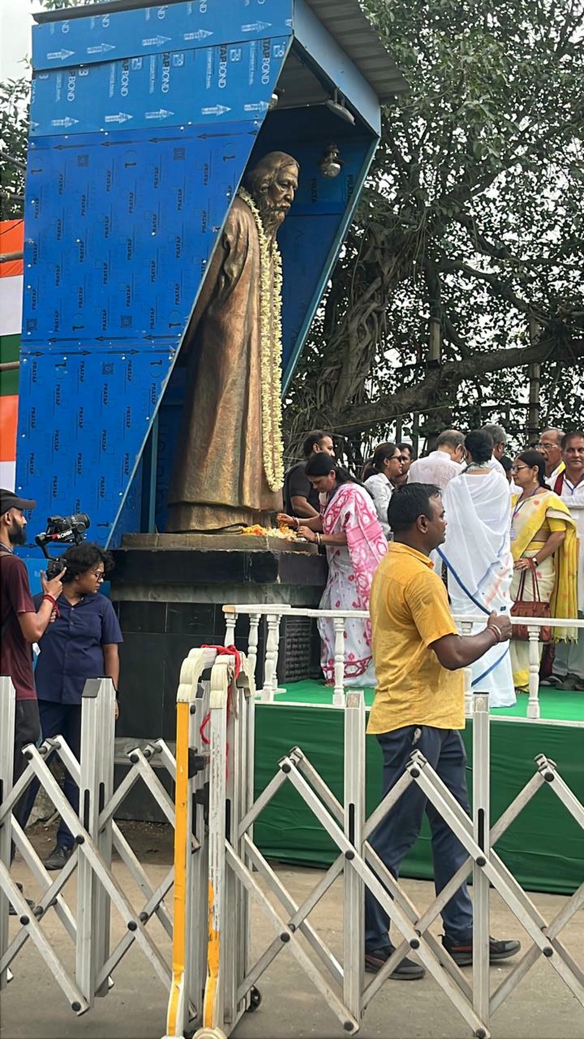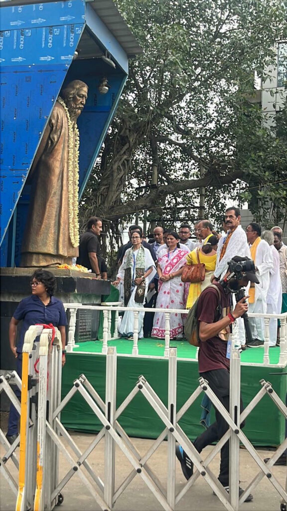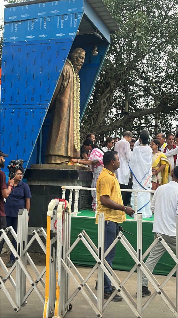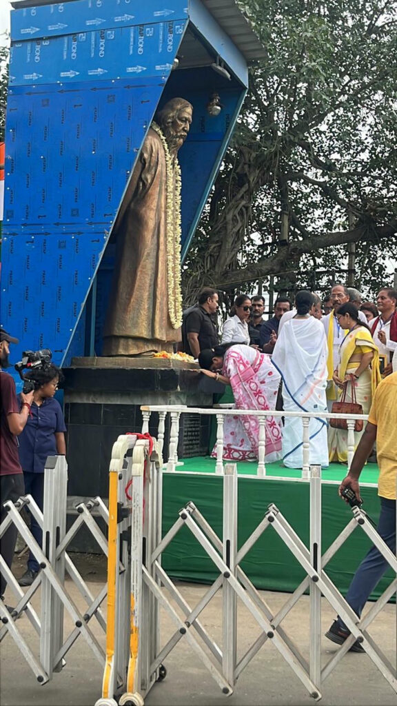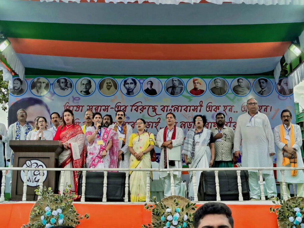 বীরভূমের রাঙামাটির শহর বোলপুর-শান্তিনিকেতনে ভাষা আন্দোলনের ঐতিহাসিক পদযাত্রার শেষ লগ্নে মাননীয়া মুখ্যমন্ত্রী মমতা বন্দ্যোপাধ্যায়ের নির্দেশে সকলকে নিয়ে জাতীয় সংগীত পরিবেশন করলেন আমাদের বোলপুর পৌরসভার পৌরমাতা।
