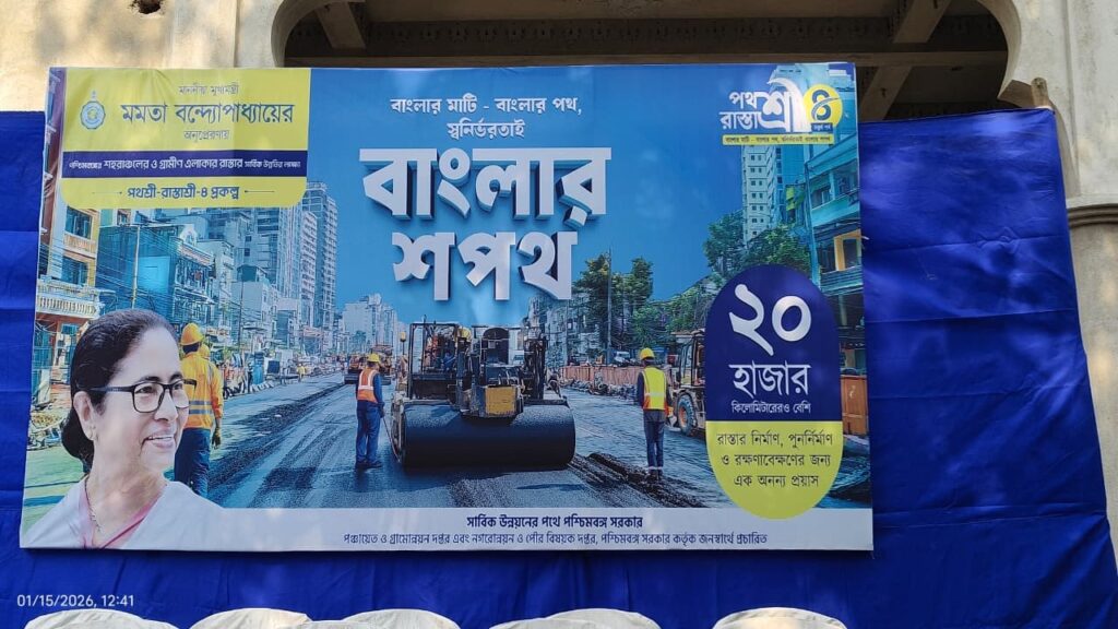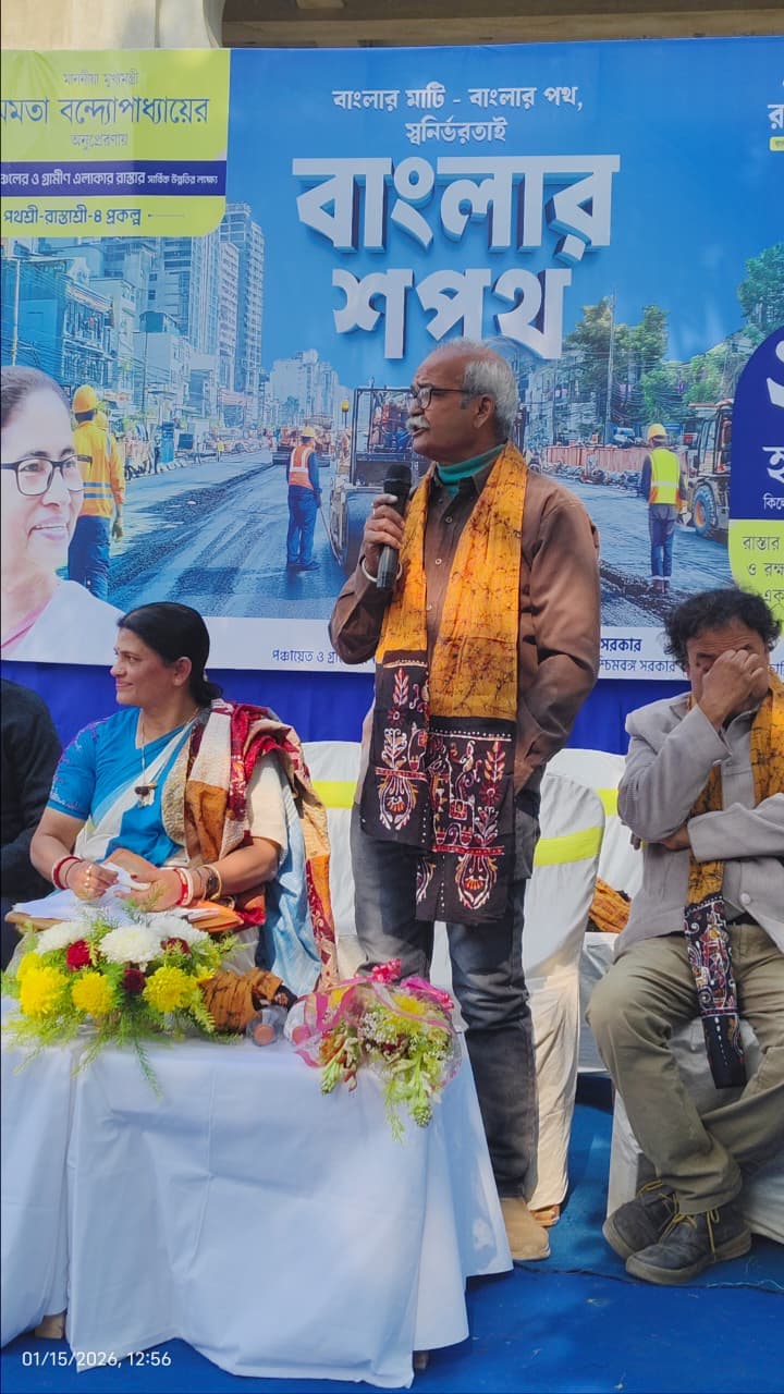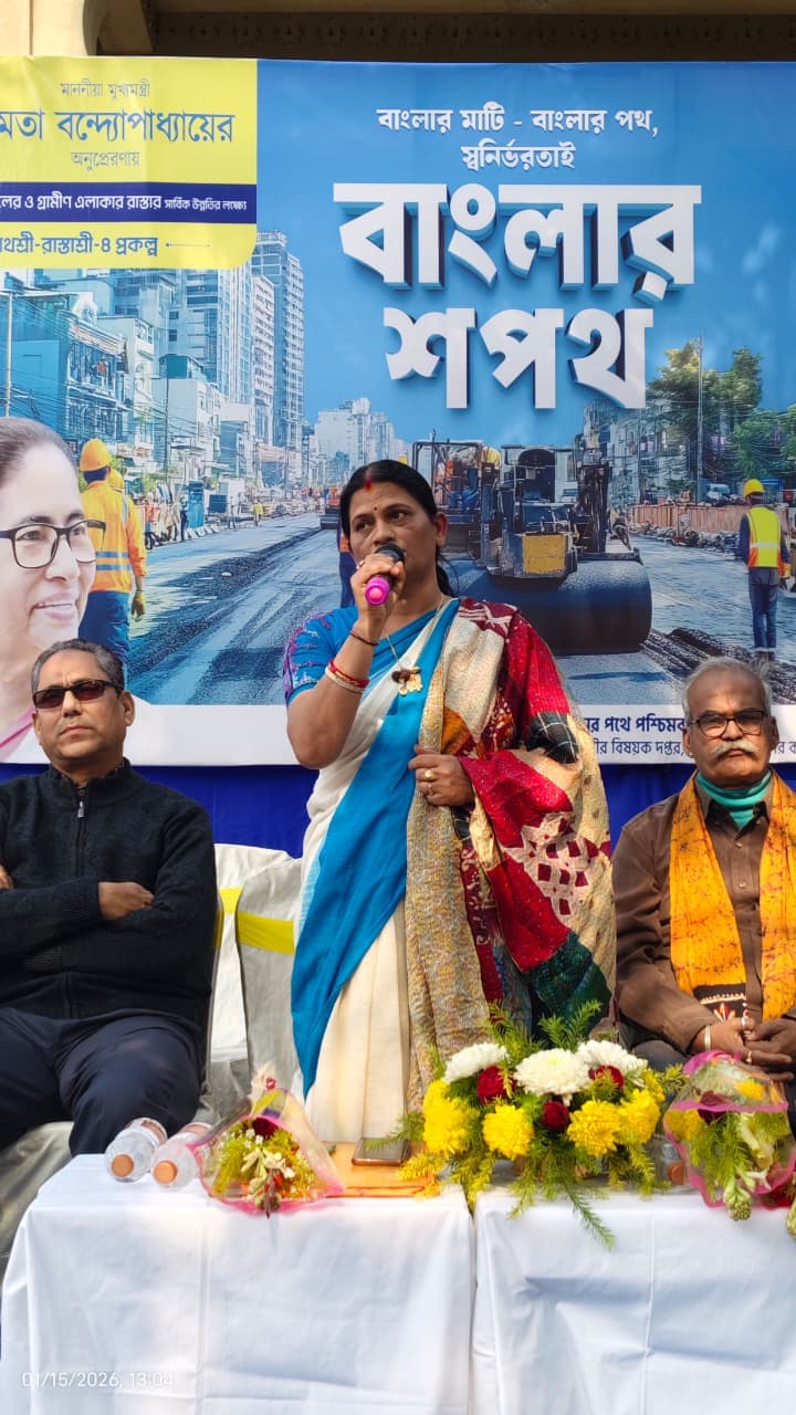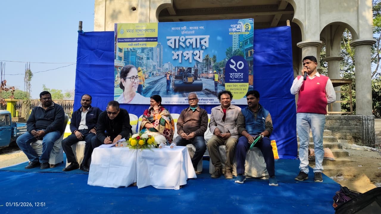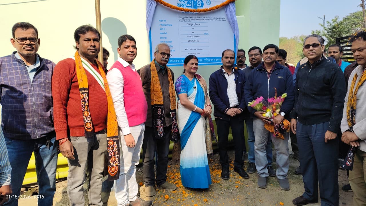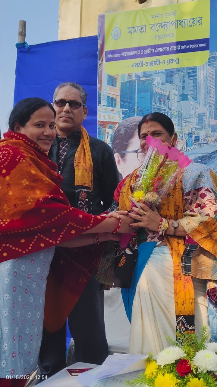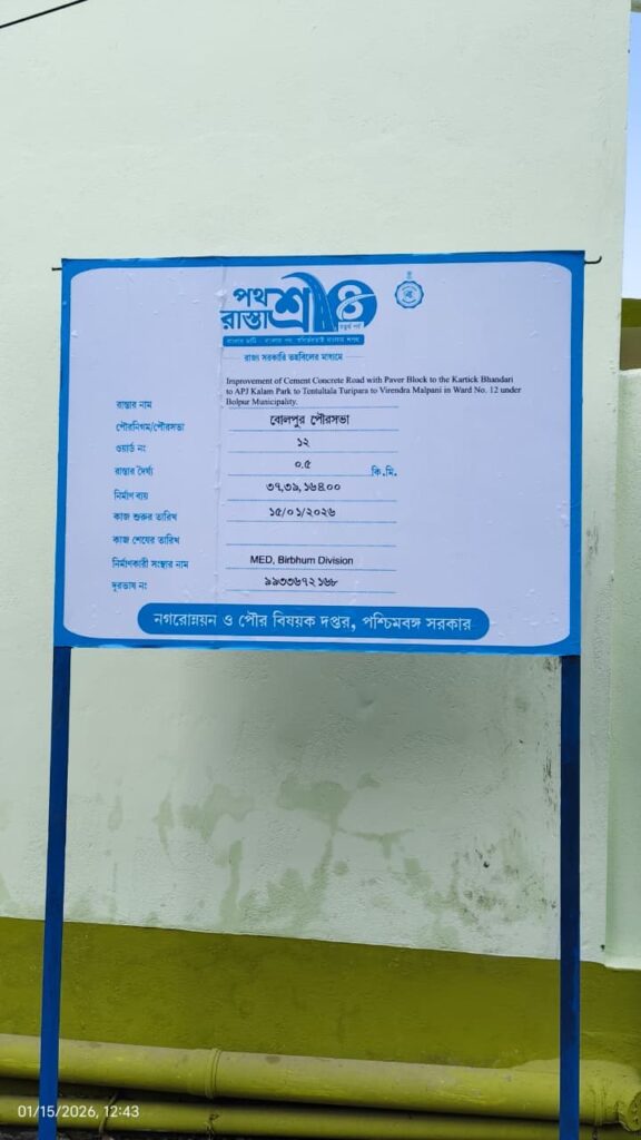 মাননীয় মুখ্যমন্ত্রী মমতা বন্দ্যোপাধ্যায়ের সমাজমুখী প্রকল্প পথশ্রী 4 এর অন্তর্গত বোলপুর পৌরসভার ১২ নম্বর ওয়ার্ডের রাস্তা সংস্কারের ভিত্তি প্রস্থর স্থাপন করা হল৷ উপস্থিত ছিলেন মাননীয়া পৌরমাতা ও এক্সিকিউটিভ ইঞ্জিনিয়ার মিউনিসিপাল ইঞ্জিনিয়ারিং ডিরেক্টরেট, বীরভূম।