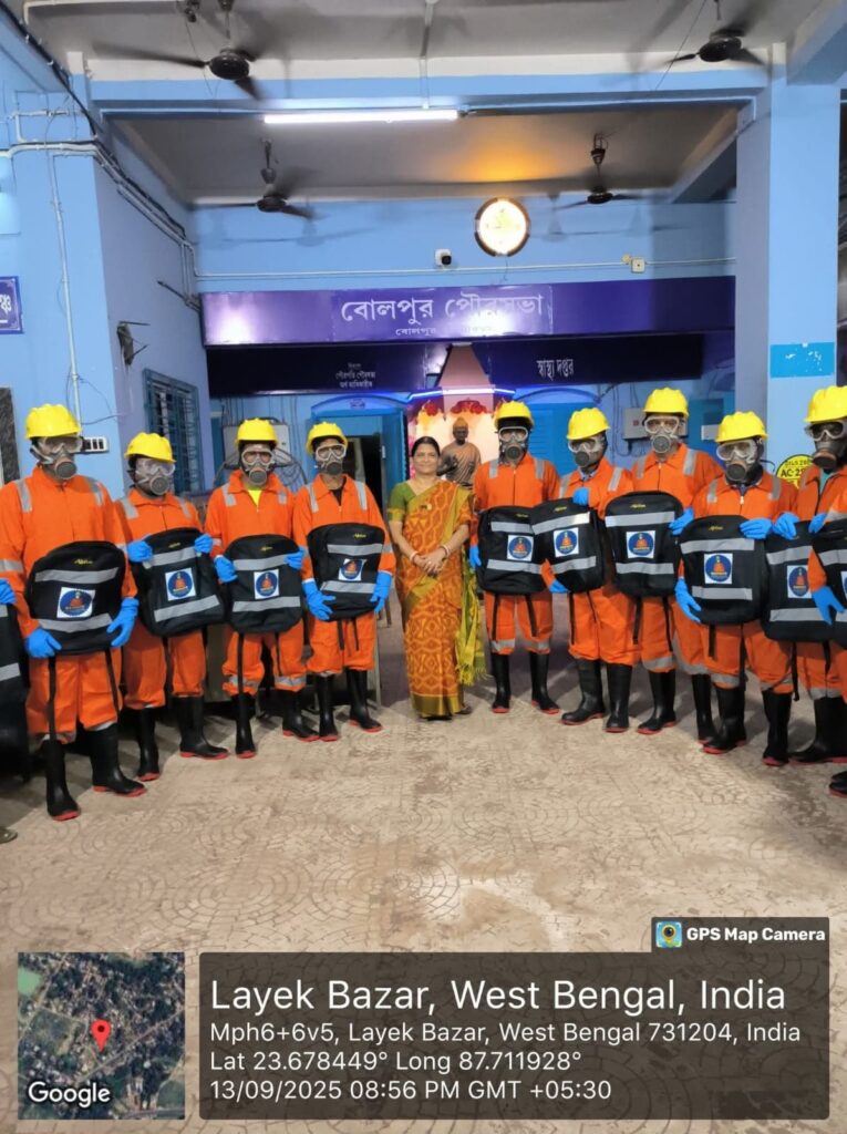 SBM প্রকল্পের অধীনে রাত্রিকালীন পরিষেবায় বোলপুর পৌরসভা কর্তৃক নির্মল বন্ধুদের সেফটি কিট প্রদান  অনুষ্ঠান।