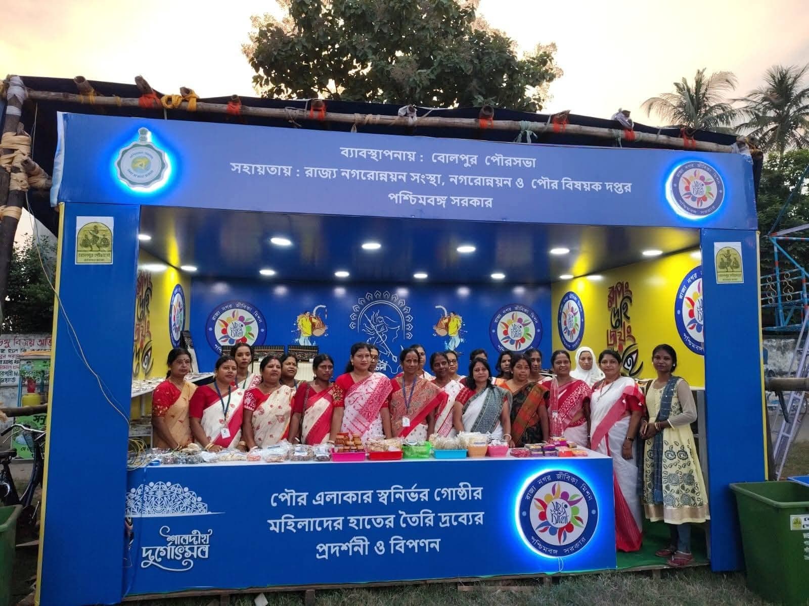 বোলপুর সিটি লেভেল ফেডারেশন-এর উদ্যোগে এবং বোলপুর পৌরসভার সহযোগিতায় মিশন কম্পাউন্ডের পূজা প্রাঙ্গণে শুরু হয়েছে স্বনির্ভর গোষ্ঠীর প্রদর্শনী ও বিপণন মেলা। এখানে স্থানীয় মহিলাদের তৈরি নানান পণ্য যেমন খাদ্যসামগ্রী, পোশাক, অলংকার ও গৃহসজ্জার সামগ্রী প্রদর্শন ও বিক্রির ব্যবস্থা করা হয়েছে।