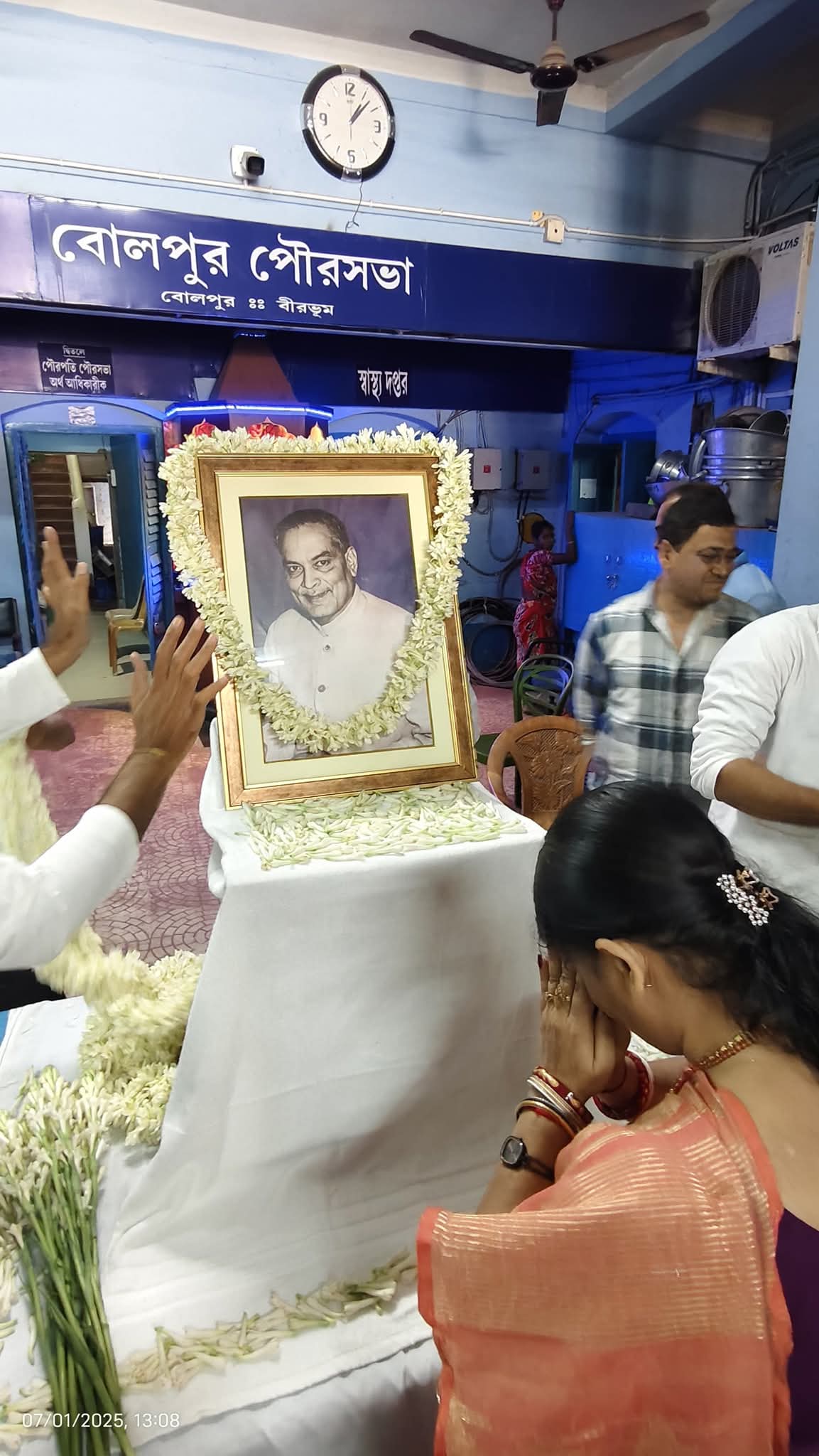 ডঃ বিধান চন্দ্র রায় (১ জুলাই ১৮৮২ – ১ জুলাই ১৯৬২) ছিলেন একজন প্রখ্যাত ভারতীয় চিকিৎসক, শিক্ষাবিদ, সমাজসেবী এবং রাজনীতিবিদ। তিনি পশ্চিমবঙ্গের দ্বিতীয় মুখ্যমন্ত্রী হিসেবে ১৯৪৮ থেকে ১৯৬২ সাল পর্যন্ত দায়িত্ব পালন করেন এবং ভারতের আধুনিক উন্নয়নের ক্ষেত্রে তাঁর অবদান অসামান্য। এই মহান ব্যক্তিত্বের জন্ম এবং মৃত্যুবার্ষিকীতে বোলপুর পৌরসভা কর্তৃক শ্রদ্ধা ও সম্মাননা জ্ঞাপন।