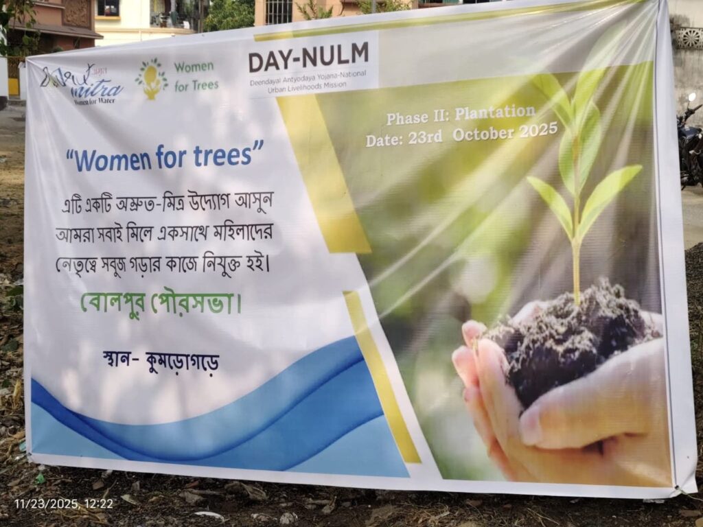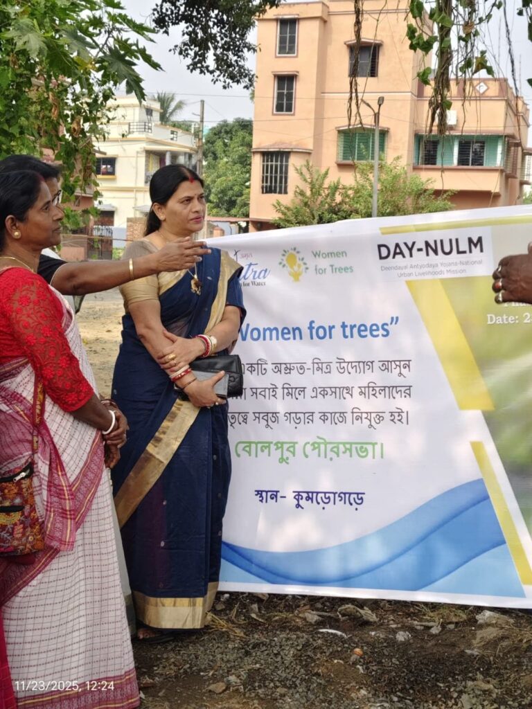 বোলপুর পৌরসভা কর্তৃক AMRUT প্রকল্পের অন্তর্গত পরিবেশবান্ধব ও সবুজায়ন কর্মসূচির অংশ হিসেবে আজ “Women for Trees” কর্মসূচির আনুষ্ঠানিক উদ্বোধন হলো যার মূল উদ্দেশ্য হলো শহরে সবুজায়ন বৃদ্ধি করা এবং স্বনির্ভর গোষ্ঠী (SHG) সদস্যাদের সক্রিয়ভাবে বৃক্ষরোপণ ও পরিচর্যায় যুক্ত করা।